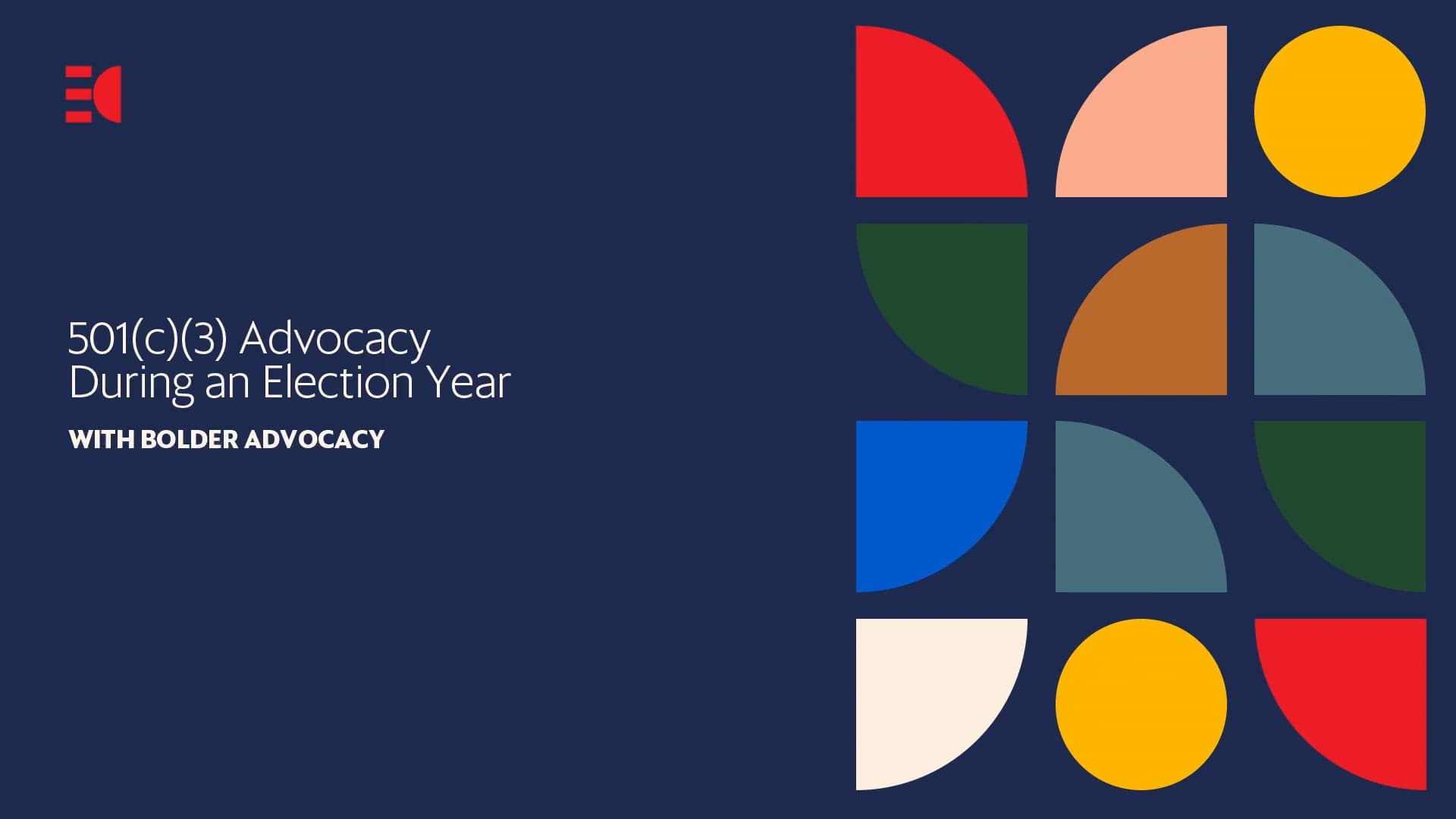 During this webinar, we are joined by Bolder Advocacy, a program that equips nonprofits with knowledge, tools, and resources to enable them to become powerful advocates within their 501(c)(3) status.