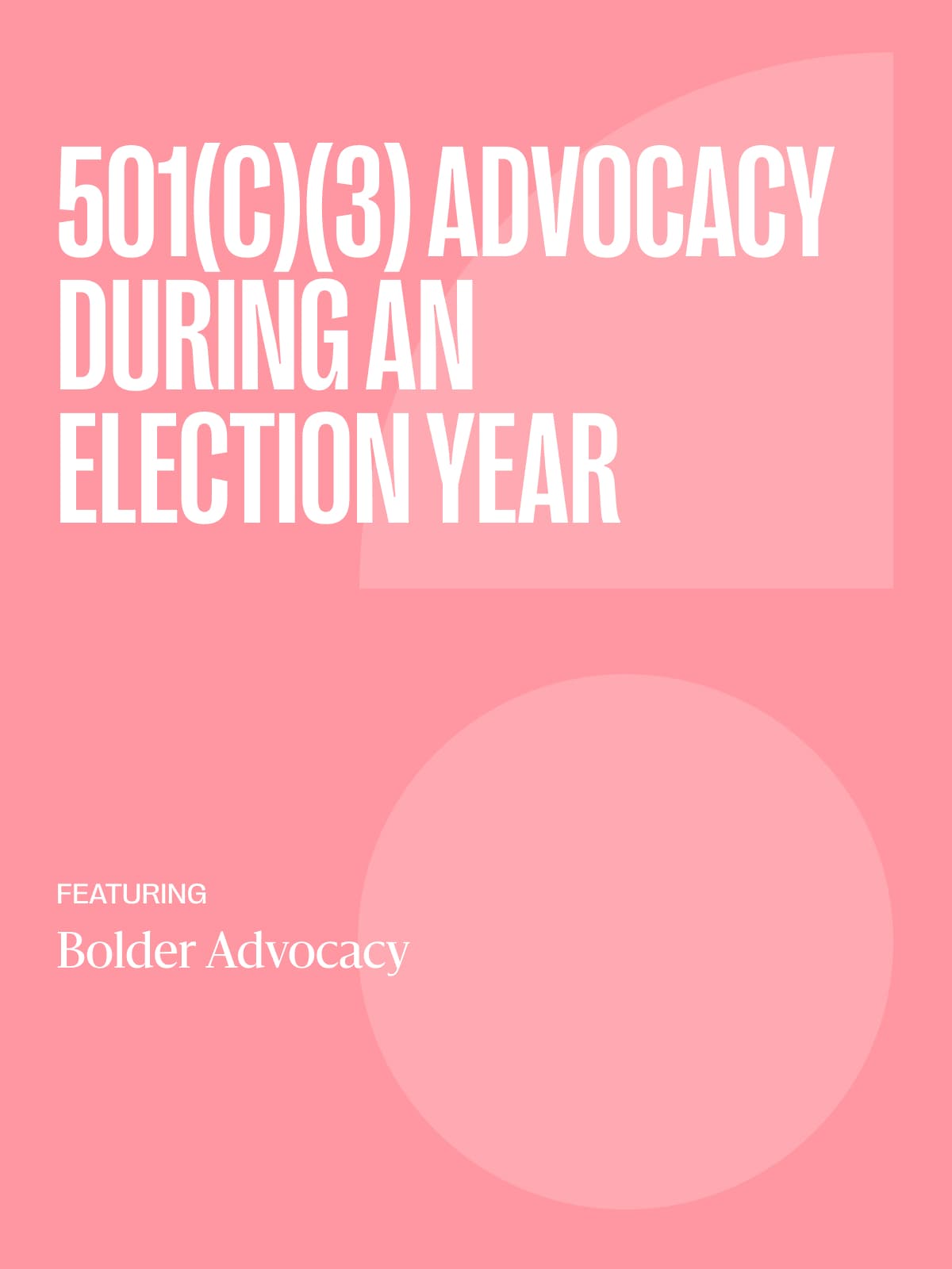 This is a standalone conversation but we welcome you to build a stronger advocacy foundation by watching the recording of a previous webinar, "501(c)(3) Advocacy During an Election Year," which is available via a link below.